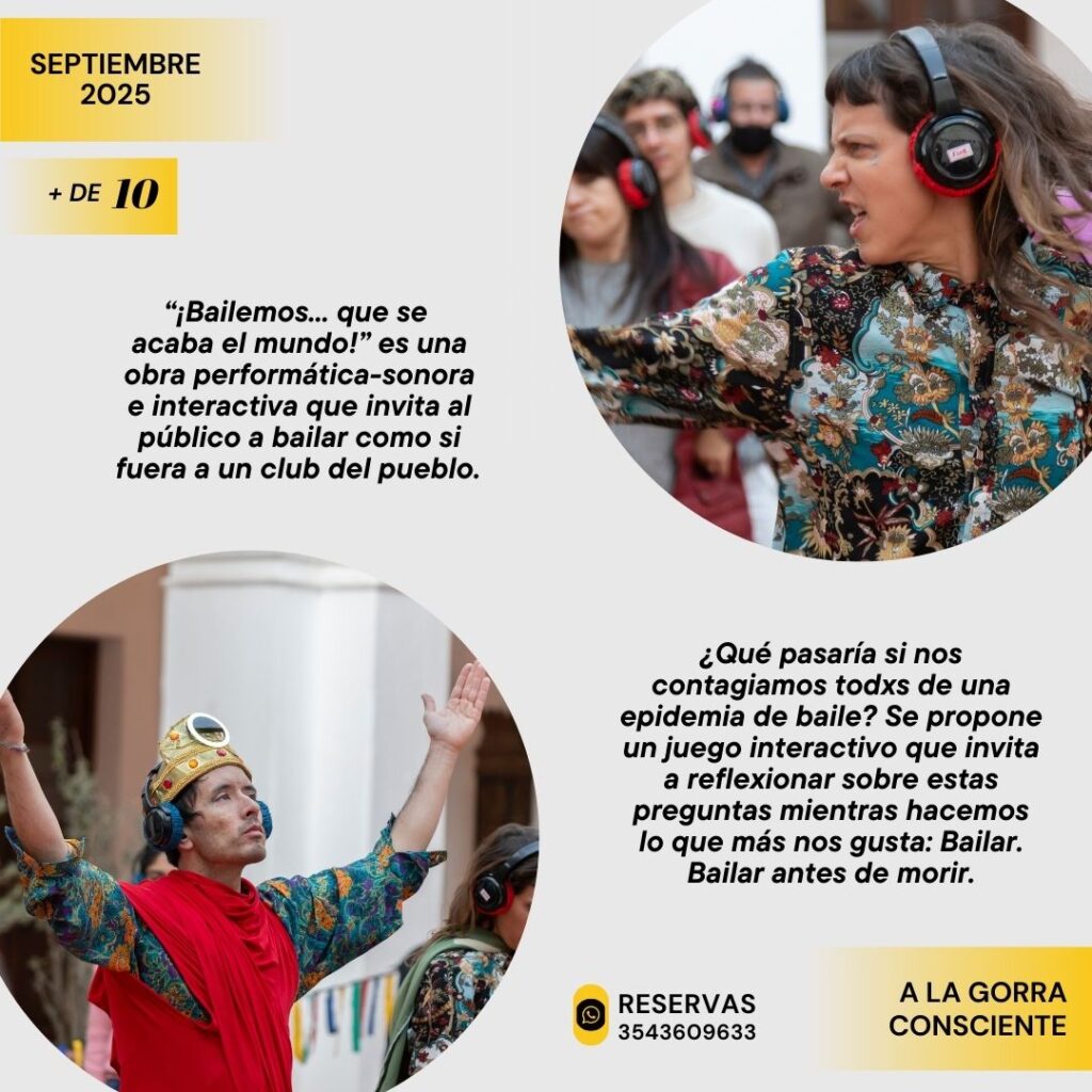 Una obra performática-sonora e interactiva que invita al público a bailar como si fuera un club del pueblo. La propuesta reflexiona sobre nuestro comportamiento, sobre los cuerpos y la comunidad a través del baile con el público.